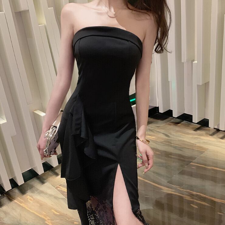 レディース ドレス チューブトップ ワンピース サマードレス ロング丈 ロングスカート ハイウエスト ノースリーブ フリル レース スリット 10代 20代 S M L ブラック 黒 夏 かわいい 可愛い 大人 大人っぽ 大人可愛い 大人女子 上品 きれいめ かっこいい クール おしゃれ お洒落 女っぽ キュート フェミニン ガーリー 色っぽい セクシー エレガント 個性的 こなれ感 存在感 主役級 カジュアル ファッション スタイル コーデ スリムフィット スリム 二次会 パーティー イベント 送料無料