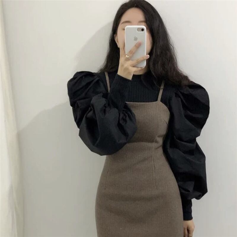 パフスリーブブラウス レディース トップス インナー フリーサイズ 女性らしい 可愛い ふんわり 体型カバー きれいなシルエット こなれ感 重ね着でも一枚でも 女子会 10代 20代 30代 40代 きれいめカジュアル きれいめ ブラウスのみ 白 ホワイト 黒 ブラック 重ね着スタイルに ラフ こなれコーデ 女子会 きれいめカジュアル シンプルなホワイト 引き締めブラック 韓国ファッション オルチャンファッション 清楚系 女子ウケ 男子ウケ デート お出かけ ウィンドウショッピング ランチ 送料無料