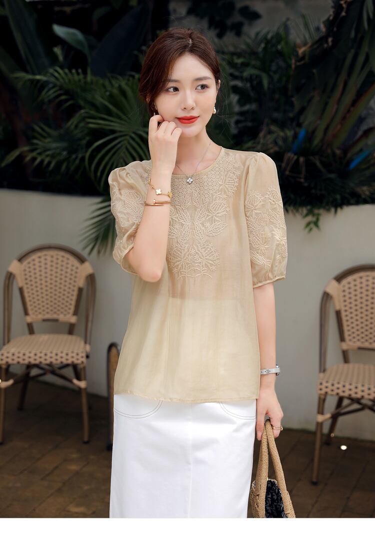 レディース トップス シャツ パフスリーブ プルオーバー 薄手 半袖 パフ袖 ラウンドネック 20代 30代 M L XL 大きめサイズ ラージサイズ ベージュ ホワイト 夏 サマー かわいい 可愛い 大人 大人っぽ 大人可愛い 大人女子 上品 きれいめ かっこいい クール おしゃれ お洒落 女っぽ キュート フェミニン ガーリー レトロ ママコーデ カジュアル ファッション スタイル コーデ ラフ ルーズ ゆったり 体型カバー 個性的 お出かけ デート ランチ 旅行 女子会 休日 送料無料