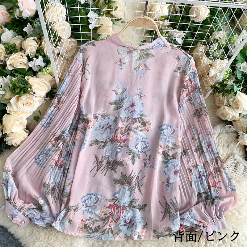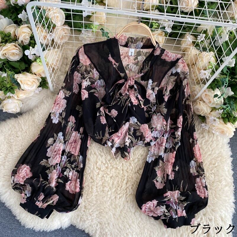 シャツ ブラウス 長袖 ボリューム袖 パフスリーブ Vネック フレア シフォン リボン レトロ スイート 甘アイテム ボリューミイ 花柄 小花柄 フラワー かわいい 大人可愛い きれいめ 大人 上品 おしゃれ お洒落 大人可愛い 大人女子 ラブリー キュート ガーリー セクシー エレガント あざと あざとかわいい タックボリューム フェミニン フェミニンスタイル 春 秋 20代 30代 ビジネス OL 通勤 学生 通学 デート お出かけ 女っぽ ゆったり ゆる 着回し レディース 送料無料