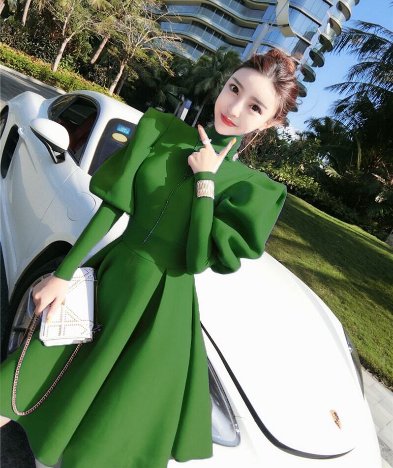 レディース ワンピース ドレス スカート ハイネック パフスリーブ Aライン Aラインスカート ミドル丈 ハイウエスト 春 S M L XL 大きいサイズ ラージサイズ 10代 20代 グリーン 無地 かわいい 可愛い 大人 大人っぽ 大人可愛い 大人女子 上品 きれいめ かっこいい クール おしゃれ お洒落 女っぽ キュート エレガント レトロ カジュアル ファッション スタイル コーデ トレンド インスタ映え 個性的 こなれ感 存在感 お出かけ デート ランチ 旅行 イベント 女子会 休日 送料無料