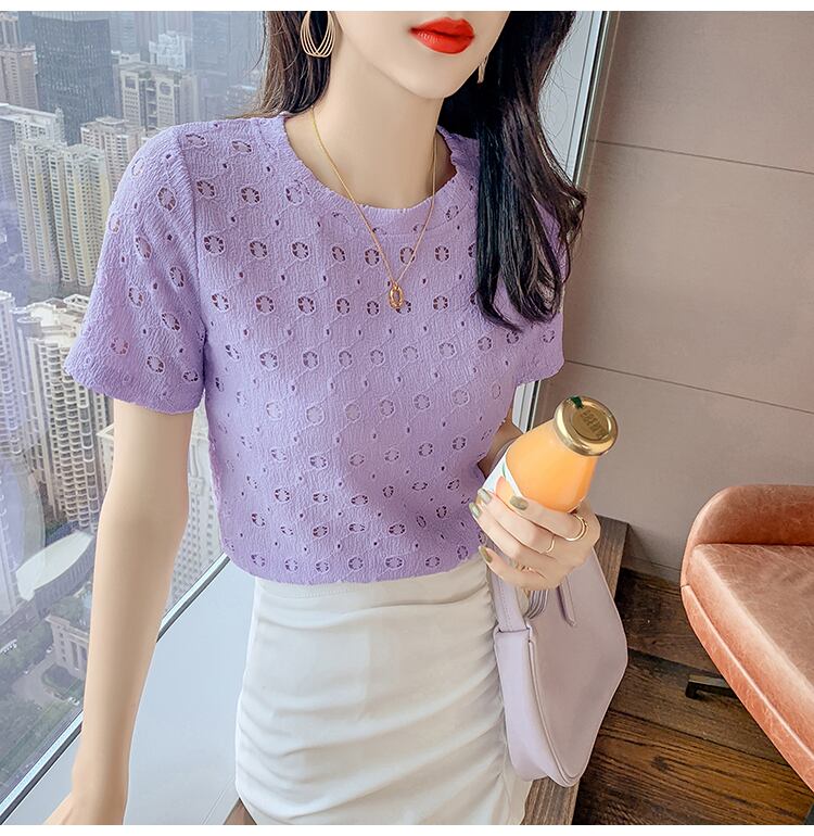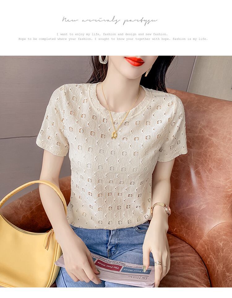 トップス ブラウス 袖あり 半袖 ラウンドネック タイト 細身 スマート レース 薄手 かわいい 大人可愛い きれいめ シンプル 大人 上品 おしゃれ お洒落 大人可愛い 大人女子 こなれ感 ガーリー エレガント 抜け感 夏 誕生日 二次会 母の日 2020 2021 2022 10代 20代 30代 40代 50代 レディース 女性用 普段使い 韓国 韓国系 オルチャン ファッション コーデ モテ 穴あき プチプラ 送料無料 サイズ S M L XL 3色展開 大人カラー 選べるカラー くすみ 送料無料