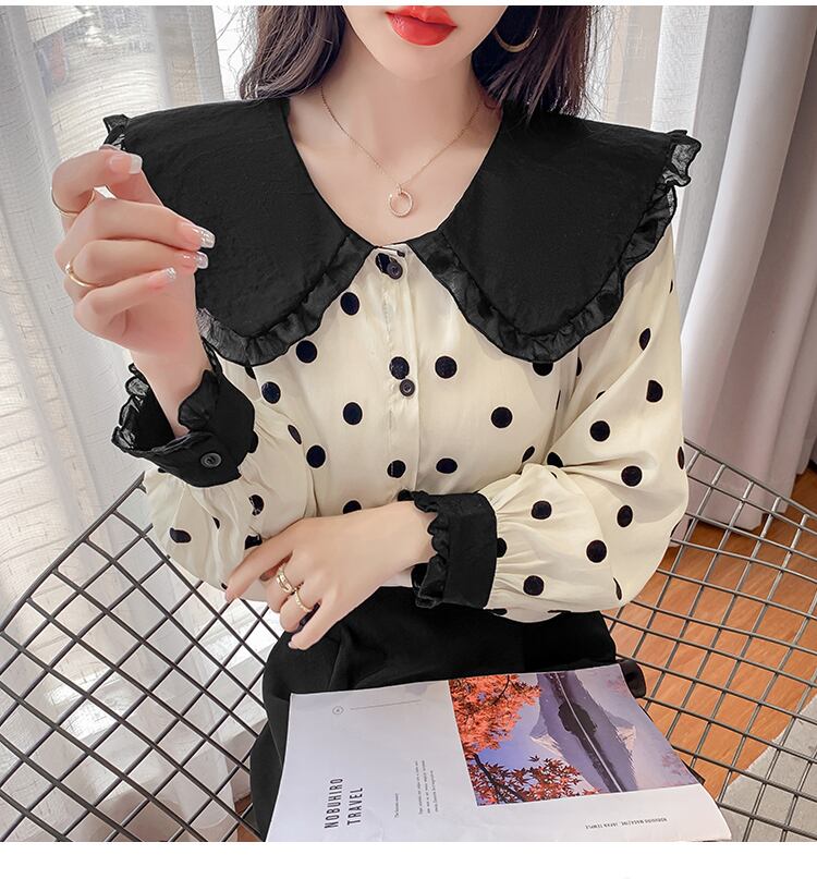 レディース トップス シャツ フリル 水玉 ドット柄 ボタン 前開き 襟付き 長袖 S M L XL 大きいサイズ ラージサイズ 10代 20代 春 秋 かわいい 可愛い 大人 大人っぽ 大人可愛い 大人女子 上品 きれいめ かっこいい クール おしゃれ お洒落 女っぽ キュート フェミニン ガーリー エレガント カジュアル ファッション コーデ トレンド インスタ映え モテ 通学 学生 ふんわり 個性的 こなれ感 とろみ感 存在感 主役級 お出かけ デート ランチ 旅行 女子会 イベント 休日 送料無料