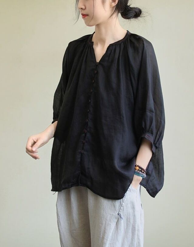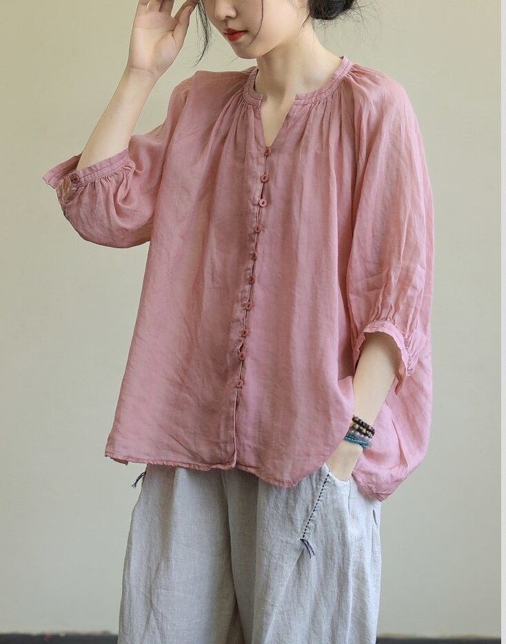 トップス シャツ ブラウス カットソー 袖あり 7分袖 七分袖 長袖 Uネック 襟なし ワイド Aライン 前開き かわいい 大人可愛い シンプル カジュアル 大人 上品 おしゃれ お洒落 大人女子 こなれ感 ラフ リラックス 無地 春 秋 10代 20代 30代 40代 50代 60代 レディース ママ ママコーデ OL 通勤 学生 通学 デート 休日 旅行 海 ナチュラル 万能 着回し 普段使い 楽ちん 送料無料 フリーサイズ ゆったり 2色展開 黒 ブラック ピンク モノトーン くすみカラ―