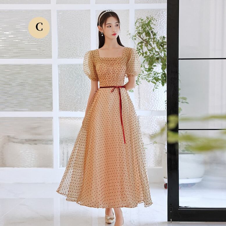 ワンピース レディース ドット柄ワンピース レース ロング丈 フレア ドレス 半袖 スクエアネック パフスリーブ ハイウエスト 透け感 シースルー シフォン リボン アプリコット パーティドレス 大人可愛い きれいめ 上品 レトロ ガーリー エレガント フォーマル フェミニン 春 夏 秋 冬 二次会 オールシーズン 謝恩会 結婚式 披露宴 セレモニー OL 学生 オフィス ビジネス 通勤 通学 デート お出かけ 女子会 パーティー イベント 体型カバー 美脚 インスタ映え 送料無料