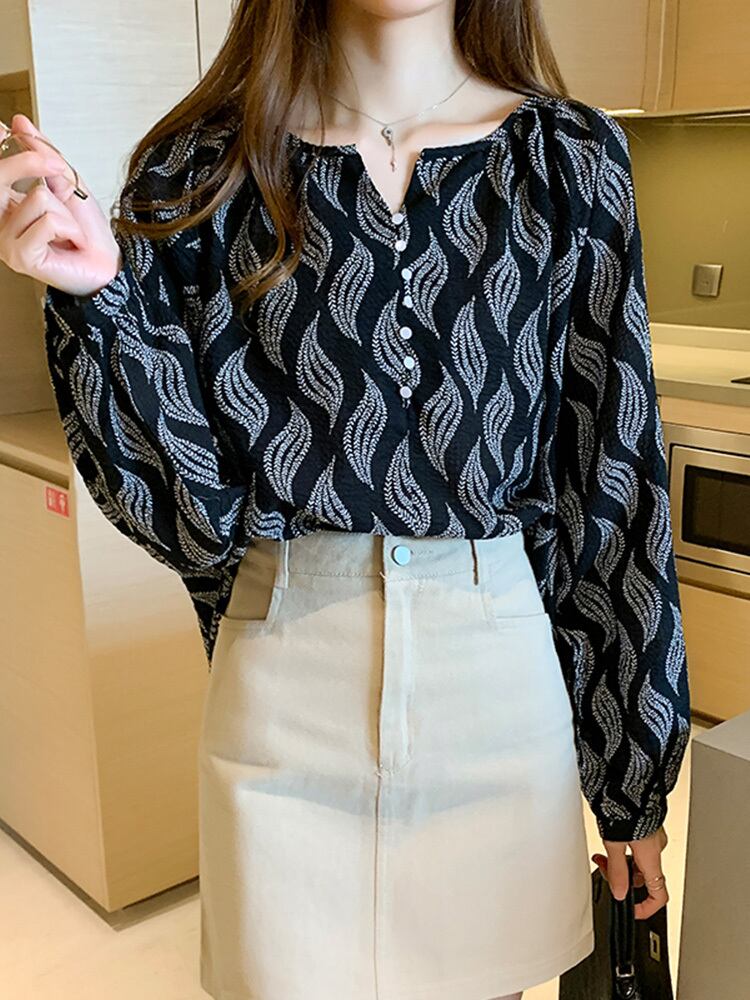 トップス ブラウス 袖あり 長袖 ボリューム袖 パフスリーブ 襟なし ポリエステル 大人可愛い きれいめ 大人 上品 おしゃれ お洒落 大人可愛い 大人女子 こなれ感 主役級 存在感 抜け感 柄 リーフ柄 プリント 春 夏 秋 誕生日 バレンタイン 20代 30代 40代 レディース 女性用 OL 通勤 デート お出かけ 公園デビュー 女子会 お泊まり 休日 イベント リゾート 旅行 海 ホテル ガーデン レストラン カフェ ランチ 普段使い コーデ スタイル 楽ちん プチプラ トレンド 送料無料