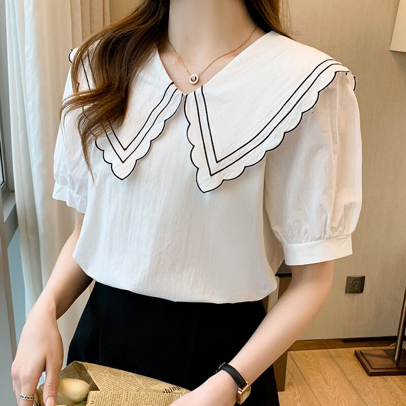 ブラウス カットソー プルオーバー 白シャツ 袖あり 半袖 ボリューム袖 パフスリーブ Vネック 襟付き フリル 大人可愛い きれいめ シンプル 大人 上品 おしゃれ お洒落 大人可愛い 大人女子 こなれ感 キュート ガーリー エレガント 主役級 存在感 抜け感 無地 夏 20代 30代 40代 レディース 女性用 ビジネス OL 通勤 デート お出かけ 公園デビュー 女子会 休日 カフェ ディナー ランチ 着回し 普段使い モテ プチプラ サイズ S M L XL 小さいサイズ 大きいサイズ 送料無料
