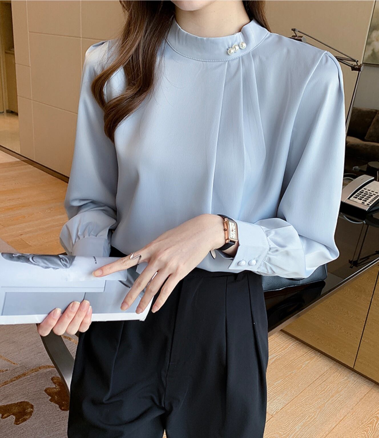 トップス レディース シフォンシャツ シャツ ブラウス トップス スタンドカラー サテン 長袖 フェイクパール パール カラーバリエーション 春 秋 ランチ ディナー ママ こなれ感 カジュアル フェミニン エレガント ヘビロテ かわいい カジュアル 大人可愛い 可愛い 高見え シンプル おしゃれ お洒落 大人女子 ラブリー キュート ガーリー 10代 20代 30代 40代 オフィス ビジネス OL 通勤 学生 通学 デート お出かけ 女子会 休日 旅行 着回し 普段使い 流行 トレンド 送料無料
