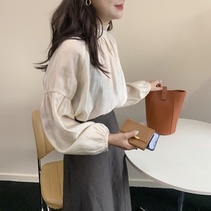 ふんわりとしたパフスリーブが女性らしいトップス。