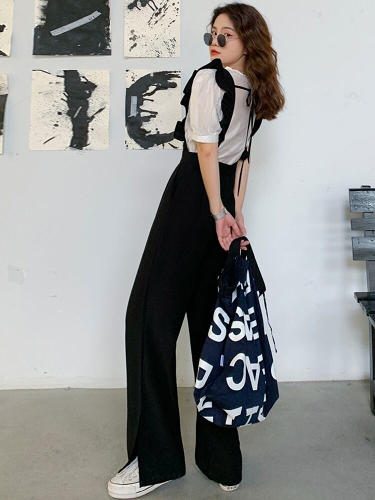 オーバーオール レディース カジュアル ボトムス ワイドパンツ ロングパンツ ロング丈 マキシ丈 パンツ フリルストラップ フリル シンプル 無地 サスペンダー オールインワン つなぎ モノトーン 大人 大人かわいい 大人可愛い 韓国 10代 20代 30代 S M L XL ブラック 黒 お出かけ デート デイリー 普段使い 着回し お散歩 公園 楽ちん ママコーデ ママ 春 夏 秋 旅行 女子旅 ストリート かわいい おしゃれ こなれ感 抜け感 スタイルアップ ハイウエスト 重ね着 送料無料