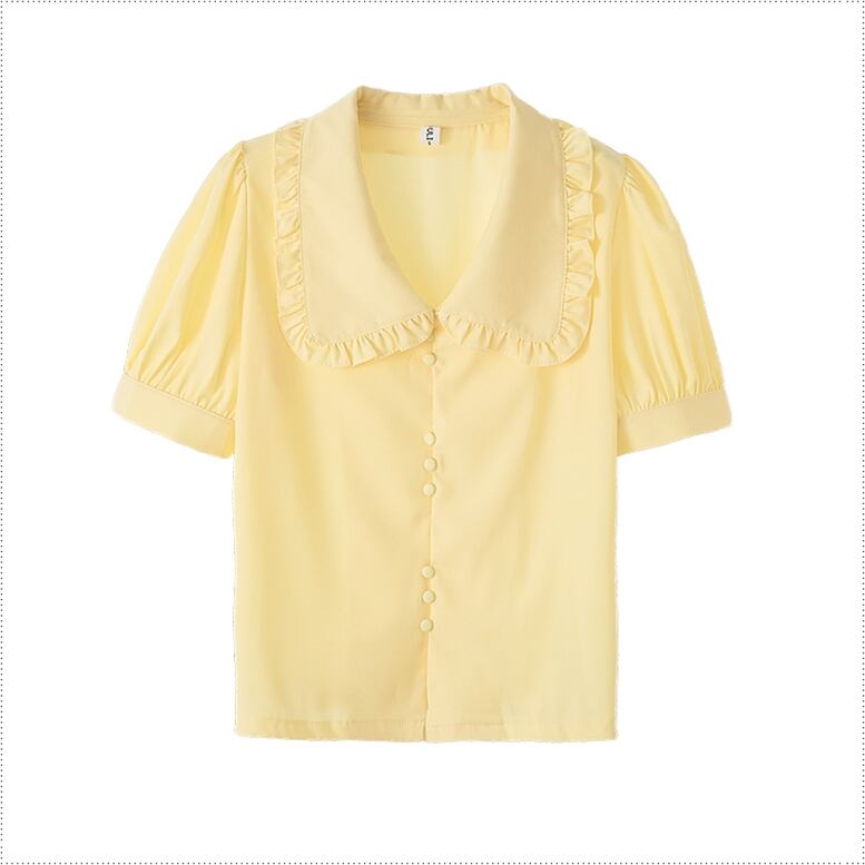 ブラウス レディース ビッグカラーブラウス 襟付き フリル パフスリーブ Vネック 半袖 シャツ トップス ボリュームスリーブ イエロー ホワイト 白 大人可愛い きれいめ 上品 レトロ ルーズ ガーリー エレガント フォーマル フェミニン 春 夏 秋 冬 二次会 OL 学生 オフィス ビジネス 通勤 通学 デート お出かけ 女子会 パーティー イベント ゆったり 体型カバー トレンド インスタ映え パステルカラー ニュアンスカラー 送料無料