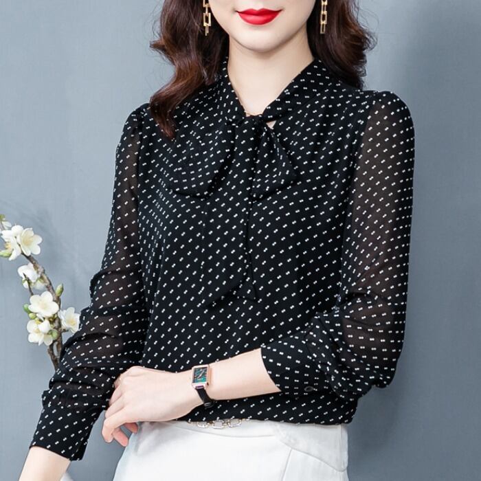 トップス ブラウス プルオーバー 袖あり 長袖 Vネック リボン 大人可愛い きれいめ シンプル 大人 上品 おしゃれ お洒落 大人可愛い 大人女子 こなれ感 モード系 エレガント モダン 主役級 存在感 とろみ感 抜け感 ドット柄 水玉 春 秋 20代 30代 40代 レディース 女性用 ママ ビジネス OL 通勤 デート お出かけ 公園デビュー 女子会 休日 パーティー イベント リゾート 旅行 ホテル ガーデン レストラン カフェ ディナー ランチ 普段使い 韓国 韓国系 オルチャン 送料無料