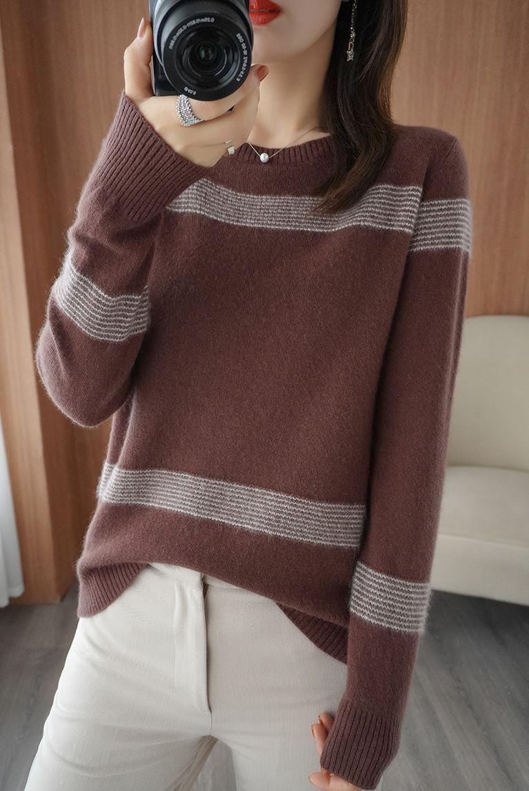 トップス レディース ニットソー セーター ニットセーター プルオーバー ニット ウール調 袖あり 長袖 スクープネック ボーダー ママ 女性用レトロ ベーシック トレンド ゆったり 大きいサイズ オーバーサイズ 大きめ 体型カバー 着痩せ 厚手 大人可愛い かわいい カジュアル 韓国 シンプル ラフ キュート おしゃれ お洒落 春 秋 冬 送料無料 お出かけ デート 女子会 休日 普段着 着回し デイリー ブラック ブラウン グレー S M L XL 2XL 20代 30代 40代 50代