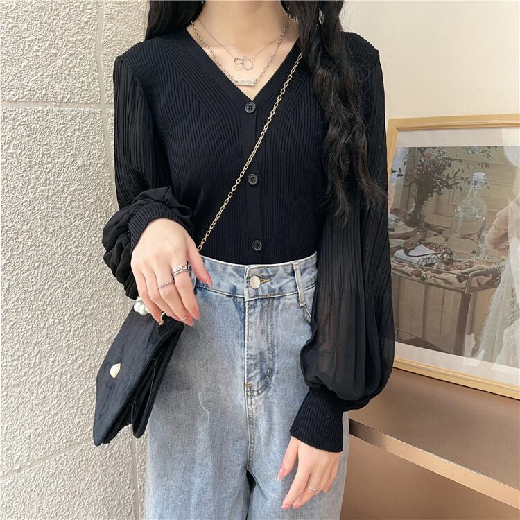 トップス レディース カーディガン ニットカーディガンボリューム袖 ニット リブニット 袖あり 長袖 Vネック バルーンスリーブ 袖シースルー 袖切り替え ぽわん袖 無地 ベーシック ママ 女性用 トレンド ゆったり 大きめ スタイリッシュ 切替 体型カバー 着痩せ 薄手 シースルー 透け感 異素材 大人可愛い かわいい カジュアル ガーリー 韓国 キュート おしゃれ 春 夏 秋 送料無料 お出かけ デート 普段着 着回し ホワイト ブラック ベージュ フリーサイズ 10代 20代 30代
