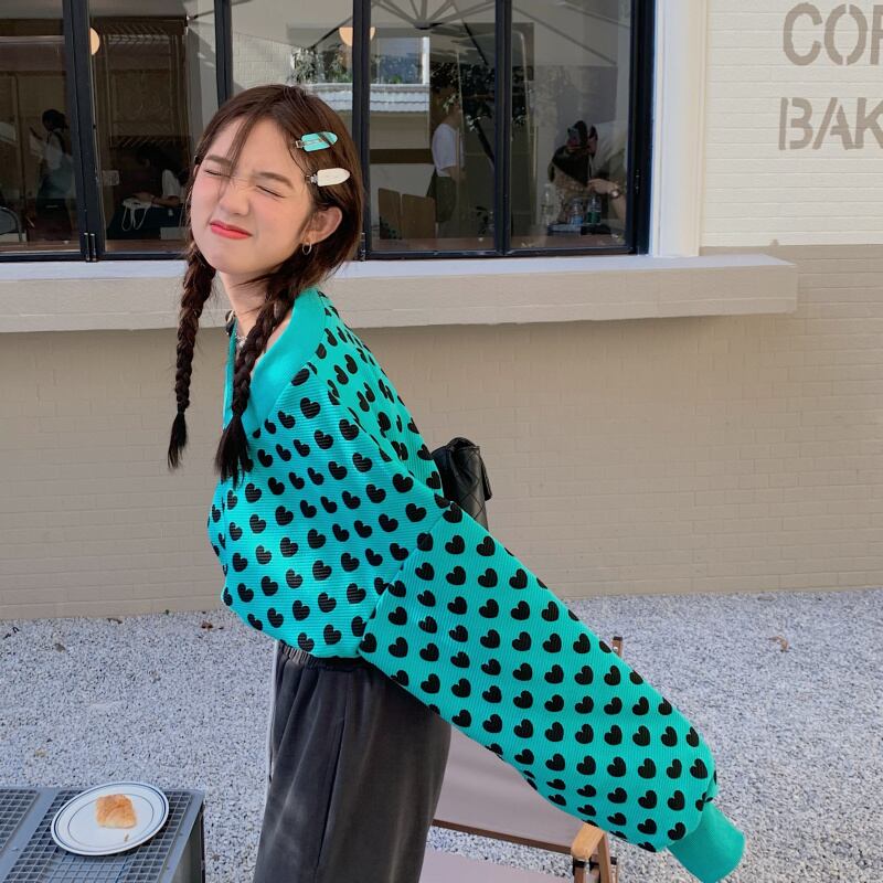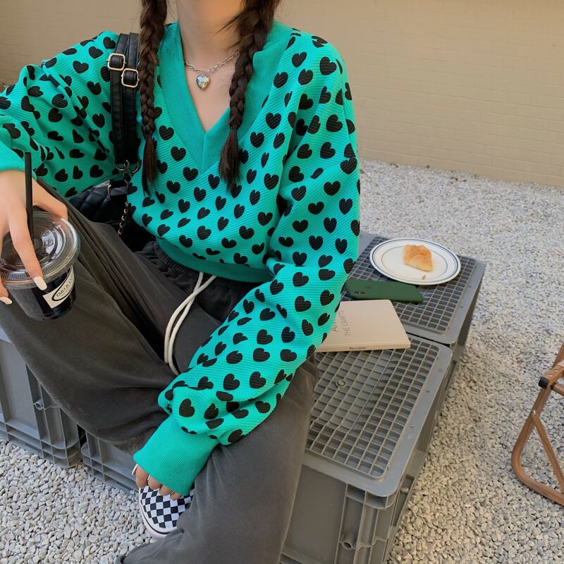 レディース トップス ハート 総柄 Vネック 長袖 韓国 ショート丈 ドロップショルダー 肩落ち 春 秋 冬 ティーン ホワイト グリーン 白 緑 ランチ ディナー ママ こなれ感 カジュアル フェミニン エレガント ヘビロテ かわいい カジュアル 大人可愛い 可愛い 高見え シンプル おしゃれ お洒落 大人女子 ラブリー キュート ガーリー 10代 20代 30代 40代 オフィス ビジネス OL 通勤 学生 通学 デート お出かけ 女子会 休日 旅行 着回し 普段使い 流行 トレンド 送料無料