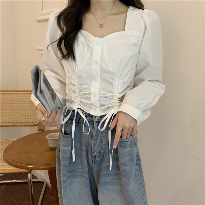 レディース ブラウス シャツ トップス 長袖 スクエアネック 無地 チェック ショート丈 シャーリング ギャザー リボン カラバリ ストリート ランチ ディナー ママ こなれ感 カジュアル フェミニン エレガント ヘビロテ かわいい カジュアル 大人可愛い 可愛い 高見え シンプル おしゃれ お洒落 大人女子 ラブリー キュート ガーリー 10代 20代 30代 40代 オフィス ビジネス OL 通勤 学生 通学 デート お出かけ 女子会 休日 旅行 着回し 普段使い 流行 トレンド 送料無料