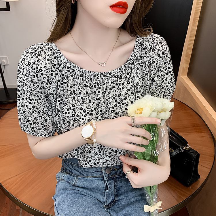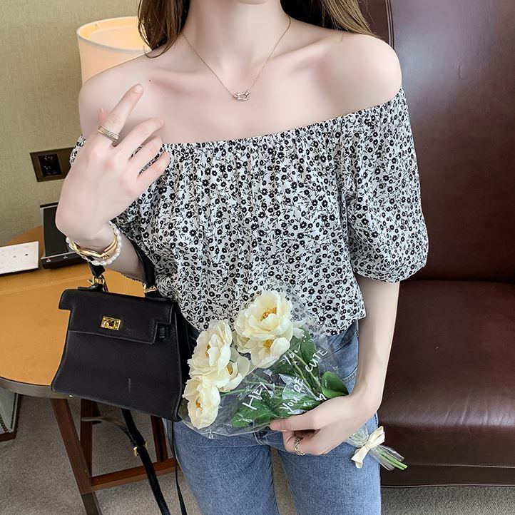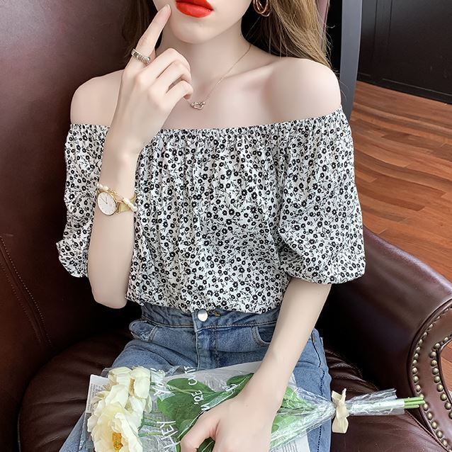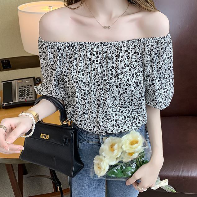 トップス レディース 女性用 シャツ ブラウス プルオーバー シフォン ミディアム 袖あり 半袖 パフスリーブ ぽわん袖 花柄 総柄 フローラル 小花柄 レトロ ベーシック トレンド ゆったり 鎖骨みせ オフショルダー 体型カバー 着痩せ 2way 大人可愛い かわいい カジュアル フェミニン ガーリー 韓国 キュート おしゃれ お洒落 春 夏 秋 送料無料 お出かけ デート 女子会 普段着 デイリー 着回し 白 ホワイト 黒 ブラック フリーサイズ ワンサイズ 10代 20代 30代 40代