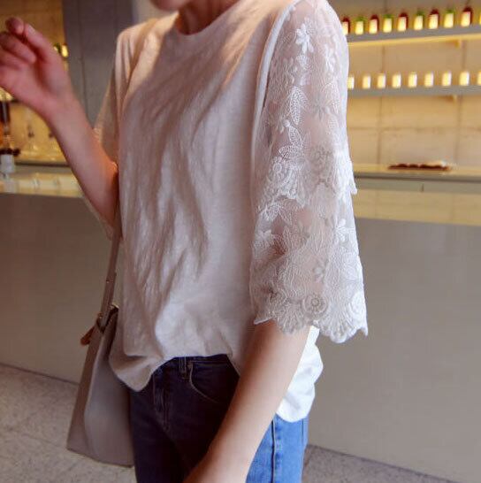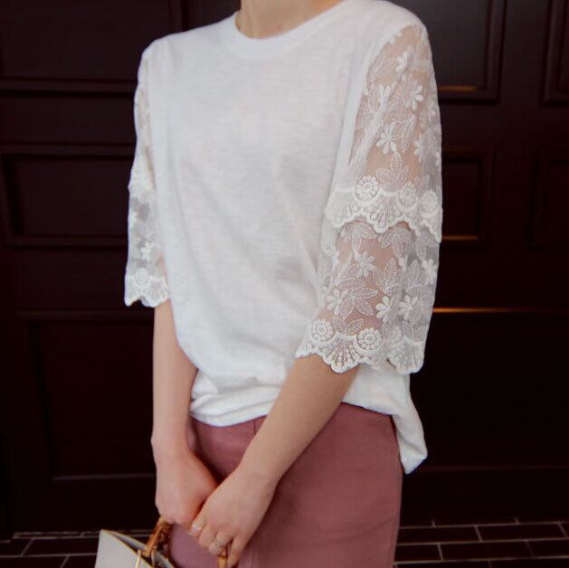 トップス レディース ブラウス シャツ ラウンドネック 長袖 七分袖 レース プルオーバー 無地 ホワイト S M L XL 大きいサイズ ラージサイズ 10代 20代 春 夏 かわいい 可愛い 大人 大人っぽ 大人可愛い 大人女子 上品 きれいめ かっこいい クール おしゃれ お洒落 女っぽ キュート フェミニン ガーリー エレガント カジュアル ファッション コーデ トレンド ラフ ルーズ ゆったり 体型カバー 通学 お出かけ デート ショッピング ランチ 旅行 女子会 イベント 休日 送料無料