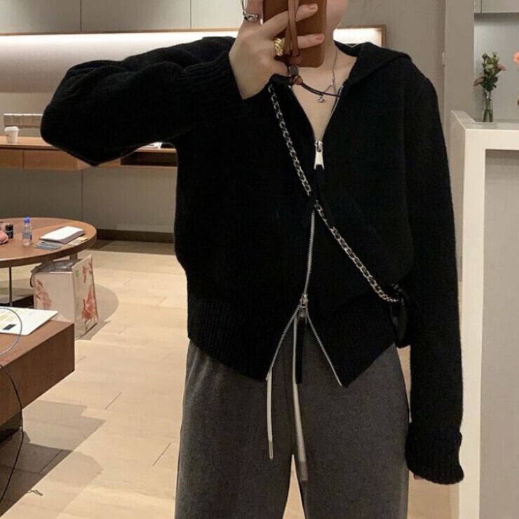 トップス アウター ニット カーディガン レディース ジッパー フード付き 長袖 秋冬 S M L XL ブラック グレー ホワイト 10代 20代 30代 かわいい 可愛い 大人 大人っぽ 大人可愛い 大人女子 おしゃれ お洒落 クール メンズライク マニッシュ ボーイッシュ シンプル カジュアル ファッション スタイル 普段着 普段使い ラフ ルーズ 楽ちん 体型カバー 落ち感 こなれ感 個性的 通勤 OL 通学 学生 お出かけ ランチ ショッピング 女子会 デート 旅行 休日 送料無料