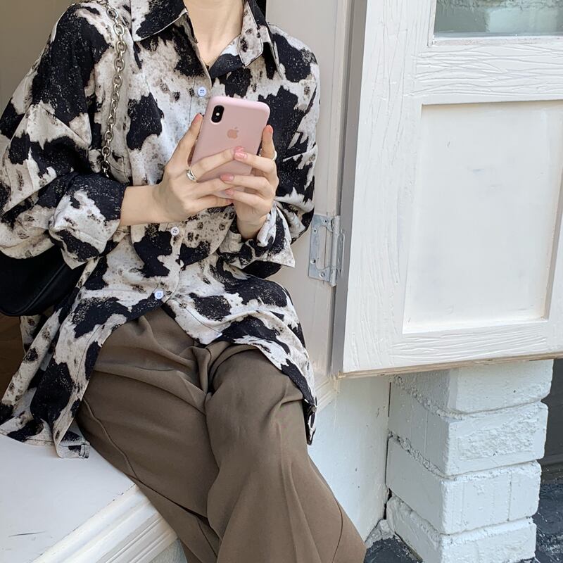 トップス レディース シャツ ブラウス 羽織り ワイドシャツ ロングシャツ 柄シャツ 水彩柄 袖あり 長袖 襟付き レギュラーカラー 総柄 プリント レトロ トレンド フロントボタン ゆったり 大きいサイズ オーバーサイズ 大きめ ドロップショルダー 上品 カッコいい 大人可愛い カジュアル 韓国 シンプル ラフ おしゃれ お洒落 春 夏 秋 冬 オールシーズン シーズンレス 送料無料 お出かけ ダンス 女子会 普段着 普段使い 着回し イベント S M L XL 10代 20代 30代 40代