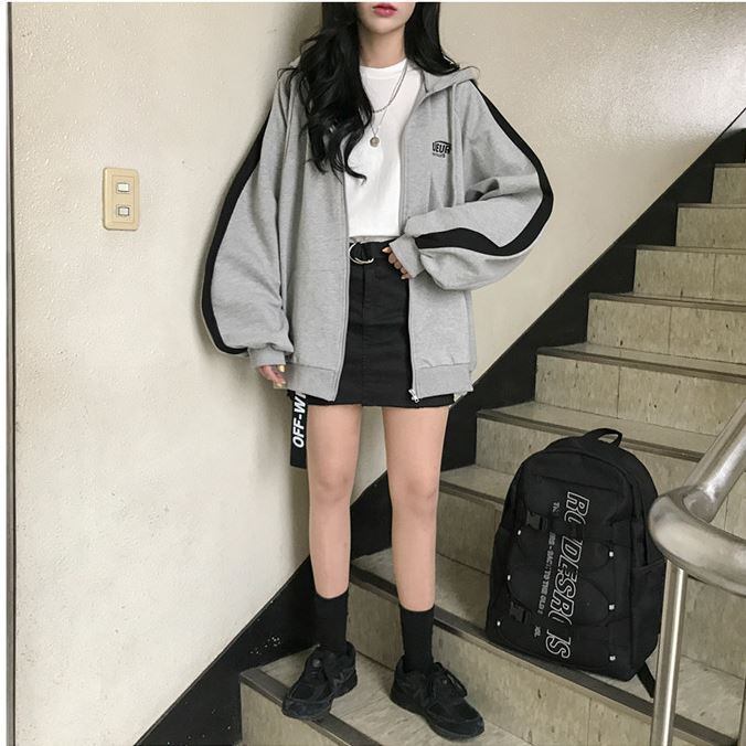 オーバーサイズのクールなフーディーに、サイドラインが入ったスポーティーなデザイン。
