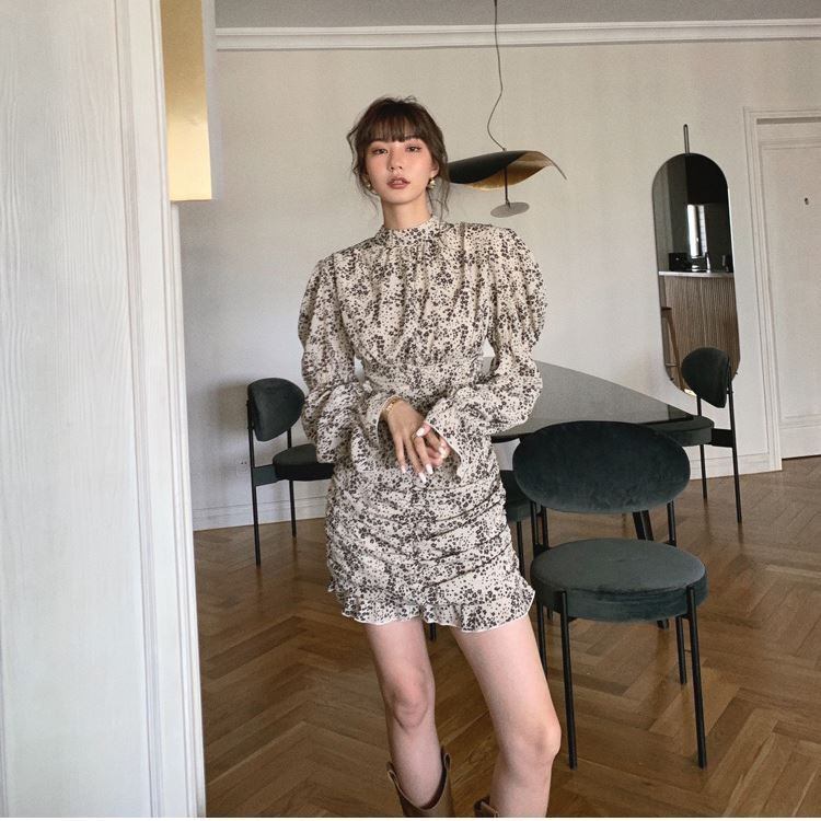 ワンピース レディース 花柄ワンピース ミニワンピース シフォン ミニ丈 スタンドカラー プルオーバー ボートネック 長袖 ボリューム袖 ぽわん袖 花柄 小花柄 総柄 プリント レトロ ハイウエスト トレンド ギャザー Aライン 大きいサイズ オーバーサイズ フレア スリム 体型カバー 着痩せ 細身 おしゃれ 大人 大人可愛い カジュアル 清楚 韓国 きれいめ 春 夏 秋 冬 オールシーズン 送料無料 普段着 普段使い 着回し ブラック ベージュ 10代 20代 30代 40代 S M L