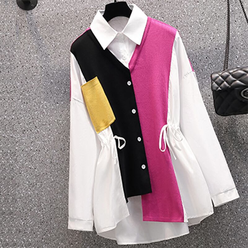 ブラウス レディース シャツ 長袖 ニット ベスト 重ね着風 バイカラー 大きいサイズ アシメ ドッキング ナチュラル リラックス ストリート ランチ ディナー ママ こなれ感 カジュアル フェミニン エレガント ヘビロテ かわいい カジュアル 大人可愛い 可愛い 高見え シンプル おしゃれ お洒落 大人女子 ラブリー キュート ガーリー 10代 20代 30代 40代 オフィス ビジネス OL 通勤 学生 通学 デート お出かけ 女子会 休日 旅行 着回し 普段使い 流行 トレンド 送料無料