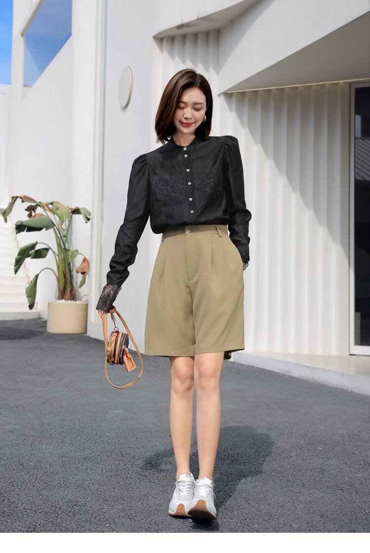 透け感とポケットやお袖のレース使いが大人可愛いですね♡