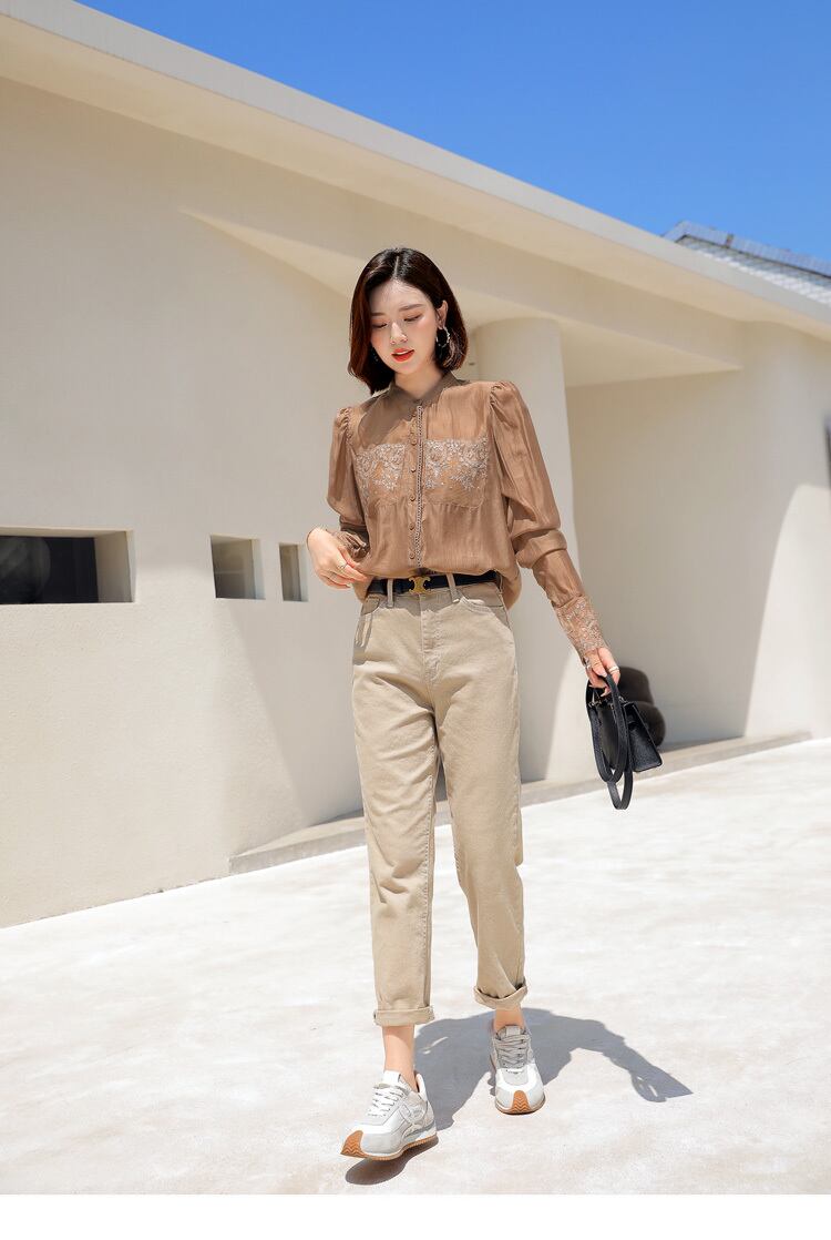 ブラウス シャツ レディース 長袖 ノーカラー テンセル 薄手 レース 透け感 無地 刺繍 花柄 カラバリ ナチュラル リラックス ストリート ランチ ディナー ママ こなれ感 カジュアル フェミニン エレガント ヘビロテ かわいい カジュアル 大人可愛い 可愛い 高見え シンプル おしゃれ お洒落 大人女子 ラブリー キュート ガーリー 10代 20代 30代 40代 オフィス ビジネス OL 通勤 学生 通学 デート お出かけ 女子会 休日 旅行 着回し 普段使い 流行 トレンド 送料無料