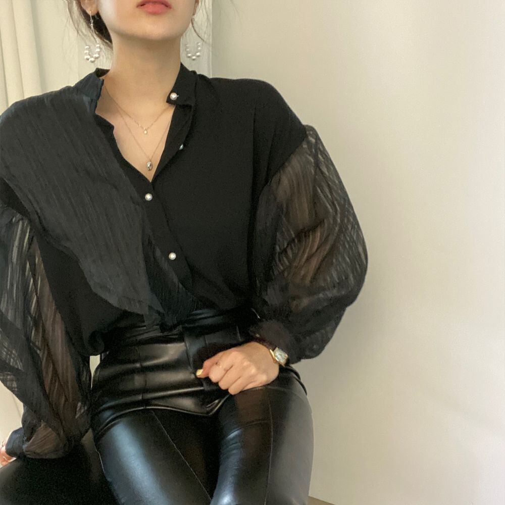 トレンドのボリュームスリーブシャツトップス。