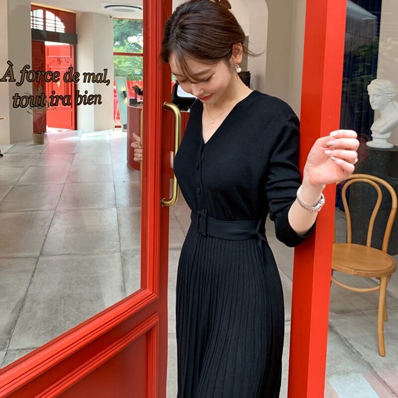 ワンピース レディース ニットワンピース ニットワンピ ロングワンピース ロング丈 ミモレ丈 長袖ワンピース 長袖 ロングスリーブ 袖あり プリーツ プリーツスカート Vネック ウエストベルト シンプル 無地 上品 清楚 きれいめ エレガント フェミニン クラシカル フレンチ おしゃれ 大人 ブラウン ブラック 茶 黒 S M L XL 20代 30代 40代 お出かけ デート お呼ばれ 旅行 ママコーデ 女子会 主役級 着回し スタイルアップ スリム 韓国 こなれ感 春 秋 送料無料