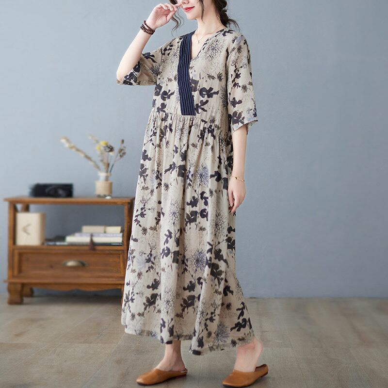 ワンピース レディース Aラインワンピース 半袖 Vネック プリーツ カジュアル ゆったり 体型カバー シンプル 花柄 涼しい 夏 大人かっこいい 大人可愛い 大人女子 こなれ感 普段着 お洒落 モデル セレブファション 美スタイル 20代 30代 40代 50代 ベージュ M L XL 2XL 3XL OL 主婦 ママ マタニティ 学生 大学生 イベント お買い物 カフェスタイル リゾート 海 モテコーデ モテファション デート 旅行 韓国系 オルチャンファション ファション SNS 送料無料