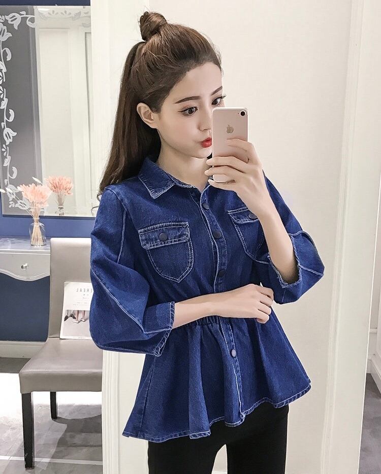 トップス シャツ デニムシャツ フリル 7分袖 レディース 人気 カジュアル 着回し 清楚感 シンプル 無地 涼しい 春 夏 秋 大人かっこいい 大人可愛い 大人女子 こなれ感 普段着 お洒落 モデル セレブファション 美スタイル 10代 20代 30代 ブルー シンプルコーデ S M L XL 2XL OL 主婦 ママ 学生 大学生 オフィスコーデ 通勤 通学 イベント お買い物 カフェスタイル リゾート モテコーデ モテファション デート 旅行 韓国系 オルチャンファション ファション 送料無料