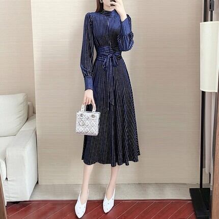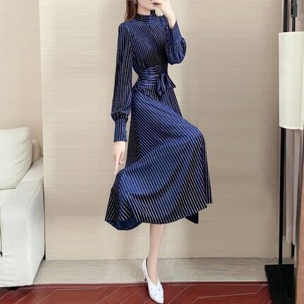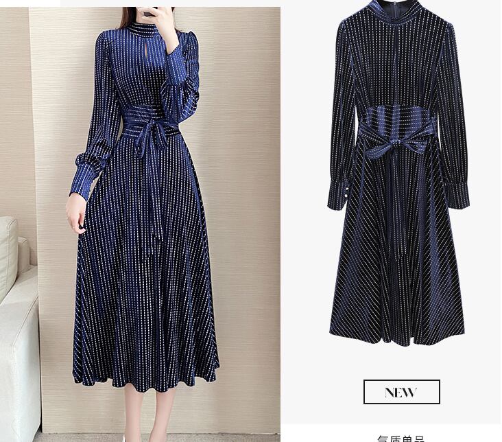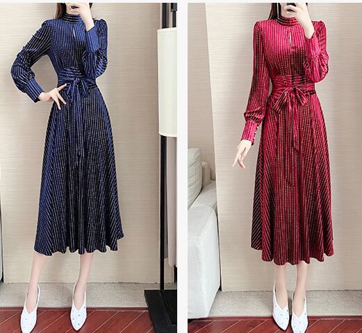 ワンピース レディース ストライプワンピース 長袖 ウエストリボン ハイウエスト スタンドカラー 膝丈 ミディアム丈 Aライン フレア ウエストマーク シフォンデザイン スタイルアップ 脚長効果 体型カバー シンプル カジュアル きれいめ フェミニン キュート エレガント 上品 お洒落 大人可愛い 通勤 通学 オフィス イベント 普段使い デート お出かけ お呼ばれ 旅行 存在感 こなれ感 インスタ映え 大きいサイズ ラージサイズ レッド ネイビー S M L XL2XL春 夏 秋 送料無料