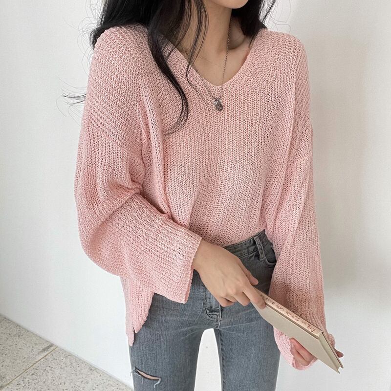 トップス レディース ニット セーター Vネック 長袖 薄手 透け感 大きめ プルオーバー ドールスリーブ ワンサイズ 春 ホワイト ブルー グリーン アプリコット ピンク 白 青 緑 ラフ ゆる ルーズ ゆったり 体型カバー 無地 シンプル カジュアル ファッション お洒落 可愛い 大人 大人っぽ 大人可愛い 大人女子 きれいめ 上品 フェミニン ガーリー 女性用 ママコーデ マタニティ お出かけ デート ランチ 女子会 旅行 休日 通勤 通学 学生 オフィス 重ね着 普段使い 着回し 韓国系 送料無料