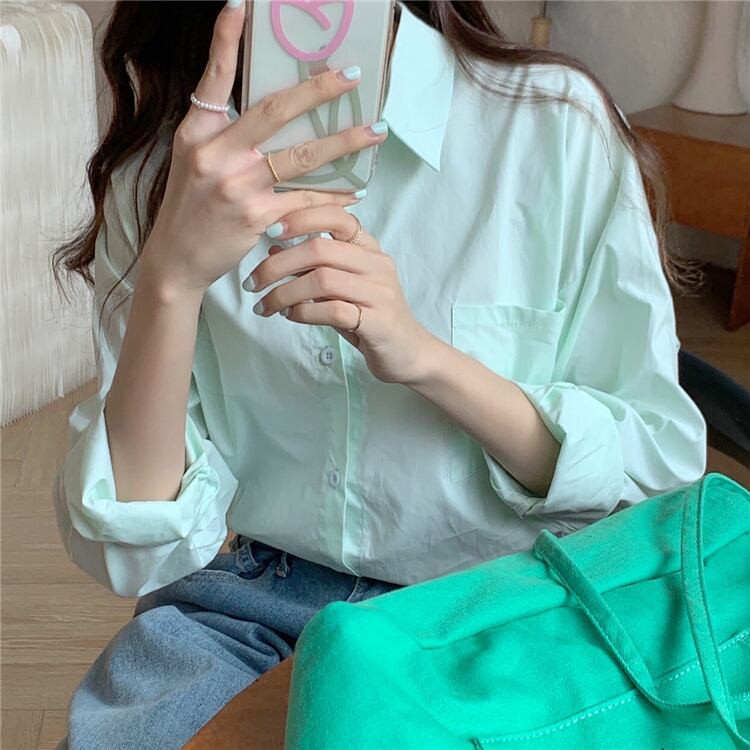 トップス レディース シャツ 長袖 薄手 前開き ボタン 襟付き ミディアム丈 ポロカラー グリーン ピンク ベージュ ブルー ホワイト オレンジ 赤紫 ブラウン ワンサイズ 春 秋 ラフ ゆる ルーズ ゆったり 体型カバー 10代 20代 30代 無地 シンプル カジュアル お洒落 可愛い 大人 大人っぽ 大人可愛い 大人女子 きれいめ 女性用 ママコーデ お出かけ デート ランチ ショッピング 女子会 旅行 休日 通勤 通学 学生 オフィス OL 重ね着 普段使い 着回し 韓国 お揃い 双子 送料無料