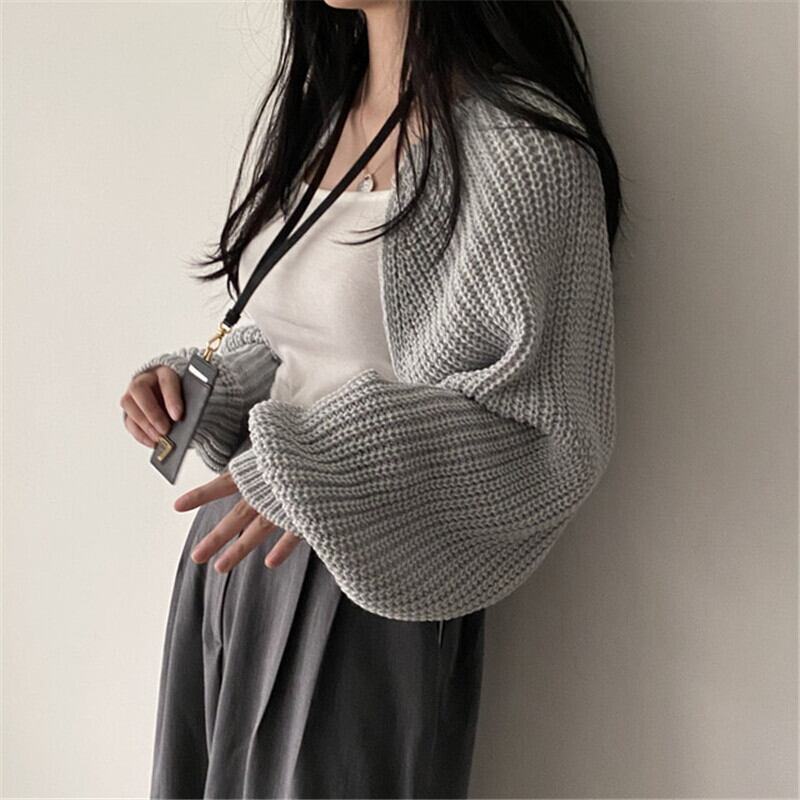 アウター レディース カーディガン ニット セーター 厚手 長袖 ランタンスリーブ ショート ショート丈 前開き アイボリー グレー ブラック ワンサイズ 秋 ラフ ゆる ゆったり ルーズ 楽ちん 10代 20代 無地 シンプル カジュアル ファッション お洒落 おしゃれ 可愛い かわいい 大人 大人っぽ 女っぽ 大人可愛い 大人女子 フェミニン ガーリー 女性用 ママコーデ お出かけ デート ショッピング ランチ 女子会 旅行 休日 通勤 通学 学生 重ね着 普段使い 着回し 韓国 オルチャン 送料無料