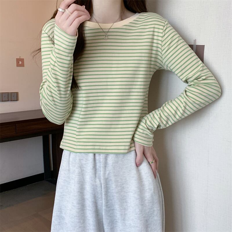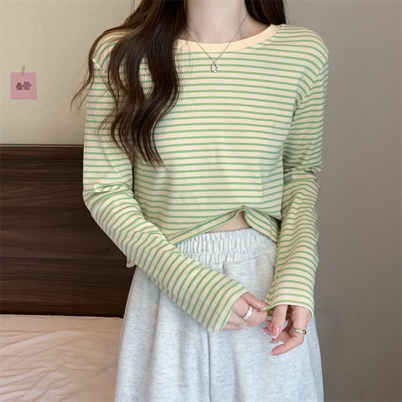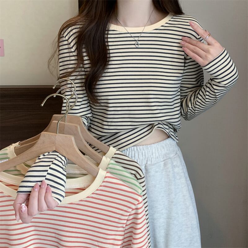 トップス レディース Tシャツ プルオーバー 薄手 長袖 袖あり 襟なし ラウンドネック ストライプ ボーダー ワンサイズ スリムフィット ブラウン オレンジ グリーン ブラック 茶色 緑色 黒色 秋 ラフ ゆる ゆったり ルーズ 楽ちん 10代 20代 30代 シンプル カジュアル ファッション お洒落 おしゃれ 可愛い かわいい 大人 大人っぽ 女っぽ 大人可愛い 大人女子 ボーイッシュ お出かけ デート ショッピング ランチ 女子会 旅行 休日 通勤 通学 学生 普段使い 韓国 オルチャン 送料無料