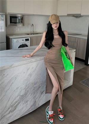 ワンピース レディース ドレス スカート スリット ロングスカート プルオーバー ハイウエスト 袖なし 襟なし ノースリーブ ブラック カーキ 夏 無地 S M 10代 20代 30代 ラフ シンプル カジュアル ファッション コーデ お洒落 おしゃれ 可愛い かわいい 大人 大人っぽ 大人可愛い 大人女子 女っぽ きれいめ セクシー エレガント かっこいい 女性用 お出かけ デート ショッピング ランチ 女子会 旅行 休日 イベント パーティー 普段使い 着回し 韓国 オルチャン お揃い 双子 送料無料