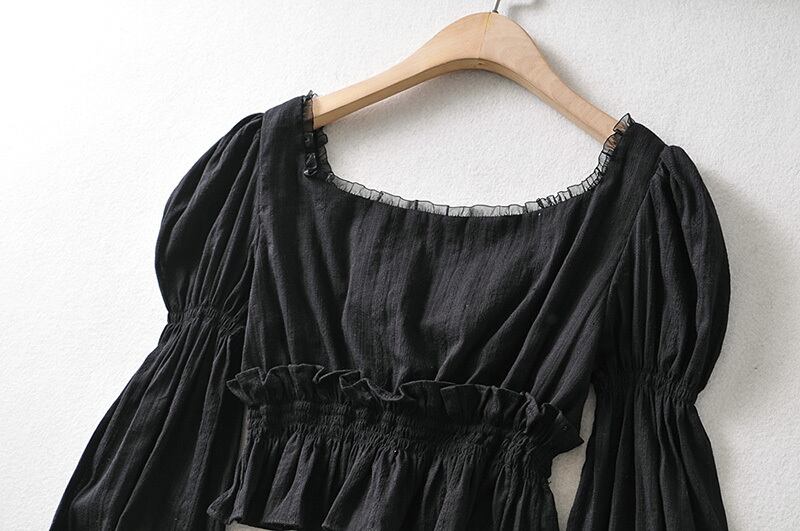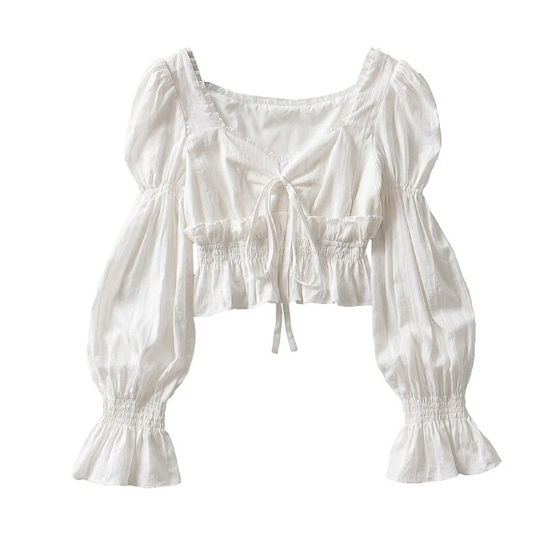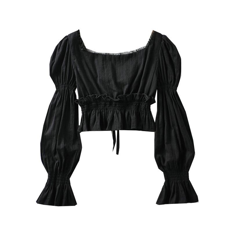 トップス レディース シャツ ランタンスリーブ 長袖 袖あり 薄手 スクエアネック 襟なし プルオーバー スリムフィット リボン レース フリル ショート ショート丈 ハイウエスト S M ブラック ホワイト 黒色 白色 無地 10代 20代 ラフ シンプル カジュアル ファッション コーデ お洒落 おしゃれ 可愛い かわいい 大人 大人っぽ 大人可愛い 大人女子 女っぽ きれいめ 上品 フェミニン ガーリー お出かけ デート ランチ 女子会 旅行 休日 普段使い 韓国 オルチャン お揃い 双子 送料無料
