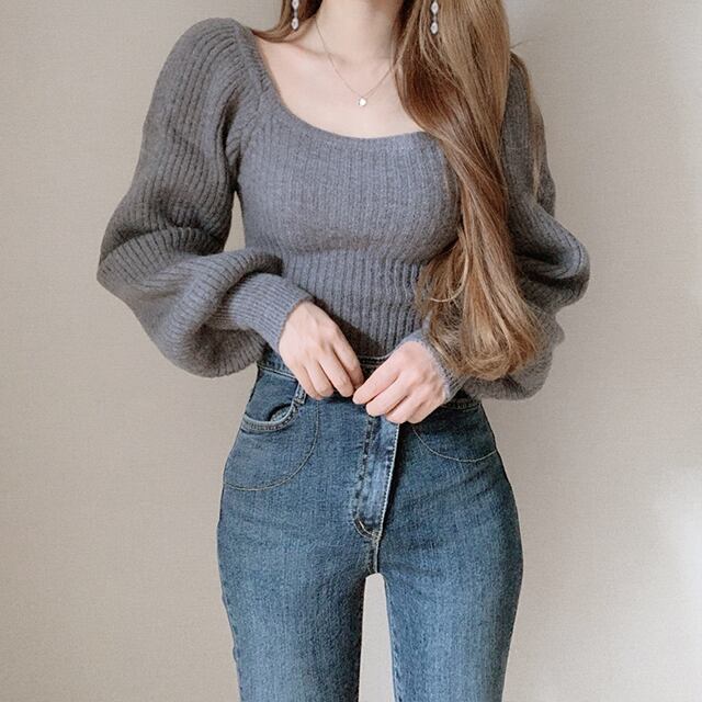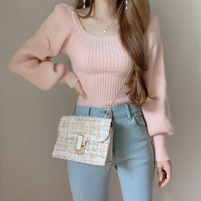 トップス レディース ニット セーター ランタンスリーブ スリムフィット 長袖 袖あり 厚手 スクエアネック 襟なし プルオーバー 秋 ワンサイズ グレー ピンク ブラック アプリコット 灰色 黒色 大人カラー 無地 10代 20代 ラフ ルーズ シンプル カジュアル ファッション コーデ お洒落 おしゃれ 可愛い かわいい 大人 大人っぽ 大人可愛い 大人女子 女っぽ きれいめ 上品 フェミニン ガーリー お出かけ デート ランチ 女子会 旅行 休日 普段使い 韓国系 オルチャン お揃い 双子 送料無料