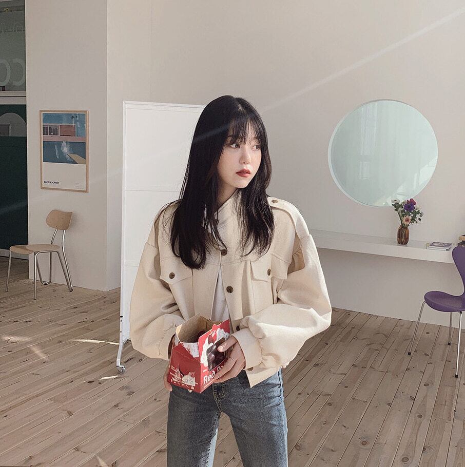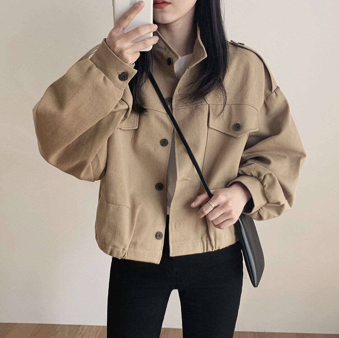 アウター レディース ジャケット コート ショート ショート丈 袖あり 長袖 襟付き ハイネック 前開き ボーイッシュ かわいい 大人 大人可愛い 大人女子 おしゃれ お洒落 ルーズ クール レトロ かっこいい スポーティー シンプル カジュアル こなれ感 ラフ 無地 誕生日 10代 20代 30代 女性 女の子 通勤 通学 学生 デート お出かけ 公園デビュー 女子会 休日 旅行 ファッション 普段使い 韓国 韓国系 オルチャン S M L XL 大きめ ゆる ゆったり アプリコット カーキ 送料無料