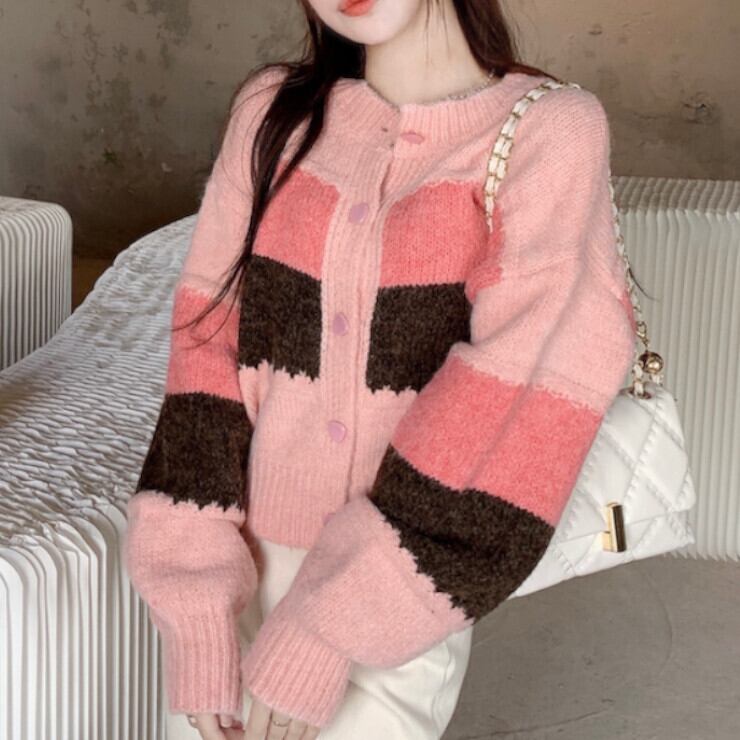アウター レディース カーディガン 袖あり 長袖 萌袖 襟なし Uネック ラウンドネック ニット 前開き 厚手 かわいい 大人 大人可愛い 大人女子 きれいめ 上品 おしゃれ お洒落 ガーリー レトロ シンプル カジュアル こなれ感 ラフ 誕生日 10代 20代 30代 女性用 女の子 通勤 OL 通学 学生 デート お出かけ 公園デビュー 女子会 休日 旅行 普段使い 韓国 韓国系 オルチャン ファッション スタイル コーデ ワンサイズ 大きめ 大きい 大きいサイズ ゆる ゆったり ピンク 送料無料