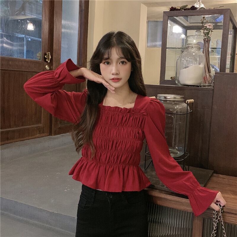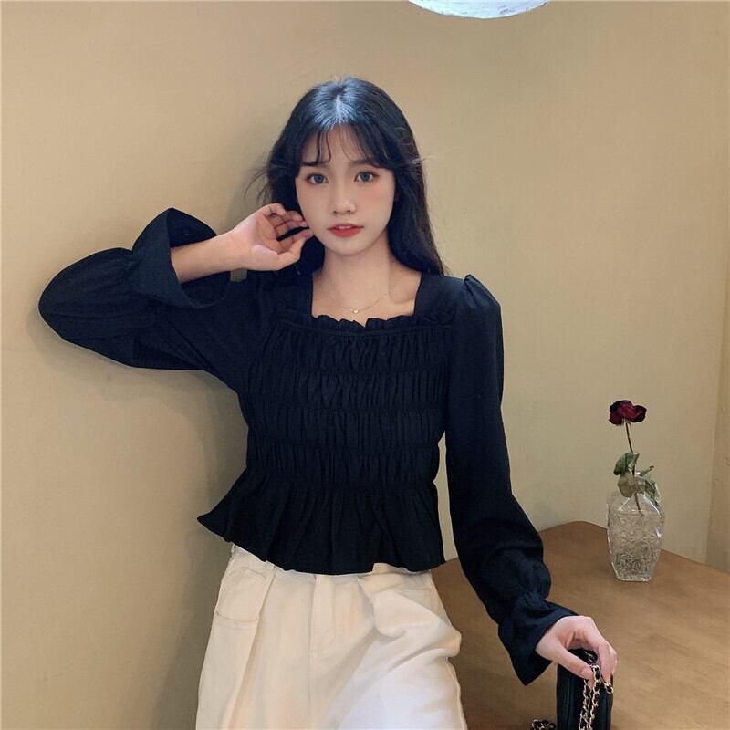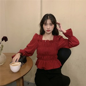 トップス レディース プルオーバー シャツ ブラウス ショート ショート丈 袖あり 長袖 パフスリーブ ボリューム袖 襟なし スクエアネック バックリボン フリル ハイウエスト 薄手 かわいい 可愛い 大人 大人可愛い 大人女子 きれいめ 上品 おしゃれ お洒落 クール ガーリー セクシー キュート シンプル カジュアル こなれ感 ラフ 無地 デート お出かけ 公園デビュー 女子会 休日 旅行 韓国 韓国系 オルチャン スタイル トレンド ワンサイズ ホワイト ブラック レッド 白 黒 赤 送料無料