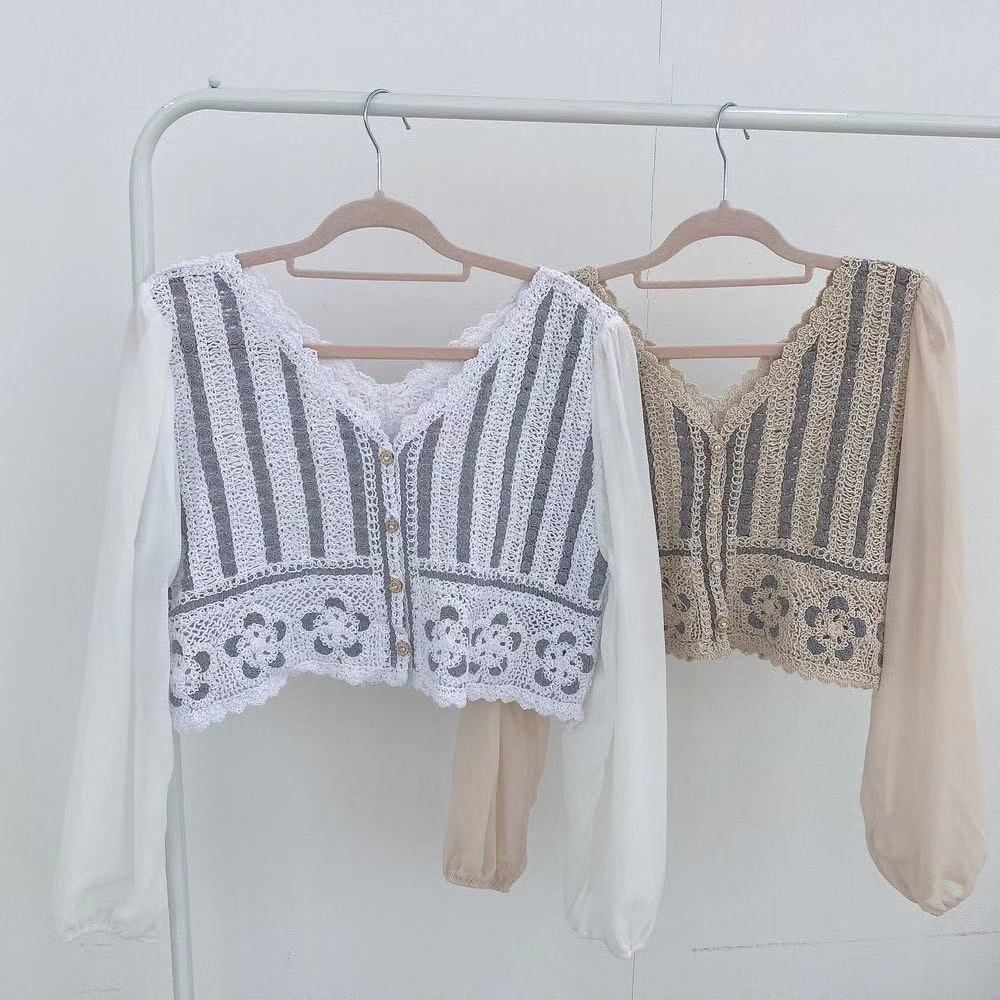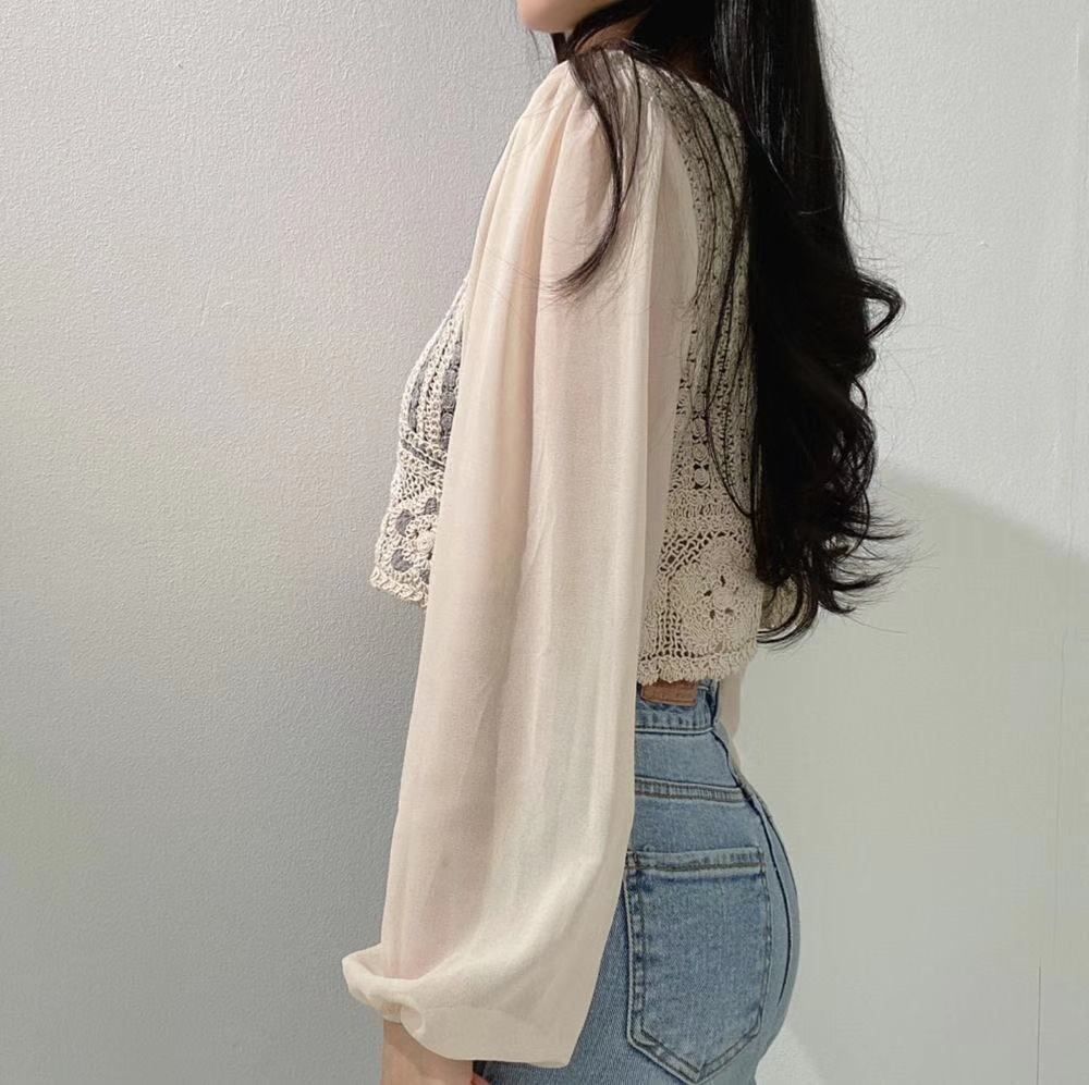 トップス レディース カーディガン ニットカーディガン ニット 長袖 ショート ショート丈 クロップド クロップド丈 フロントボタン 透け感 シースルー Vネック ボリューム袖 花 フラワー 刺繍 カジュアル フェミニン お出かけ デート 女子旅 女子会 ランチ 10代 20代 可愛い 大人可愛い レトロ 春 夏 おしゃれ オシャレ 着回し コーデ トレンドアイテム 楽ちん 休日 学生 通学 普段使い モテ 日焼け シック ホワイト ベージュ ワンサイズ 韓国系 オルチャン 韓国ファッション 送料無料