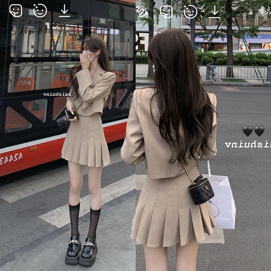 セットアップ レディース ジャケット キュロットスカート シングルボタン フロントボタン ショート ショート丈 プリーツスカート キュロット プリーツ ミニスカート ミニスカ ミニ ミニ丈 長袖 裏地付き チャック ツーピース 2点セット おしゃれ カジュアルスーツ シンプル 無地 可愛い 大人可愛い 通勤 通学 学生 10代 20代 春 秋 冬 デート 制服風 ハイウエスト 脚長 脚長効果 着回し トレンドアイテム 学生風 女性用 ベージュ S M L 韓国系 オルチャン 韓国ファッション 送料無料