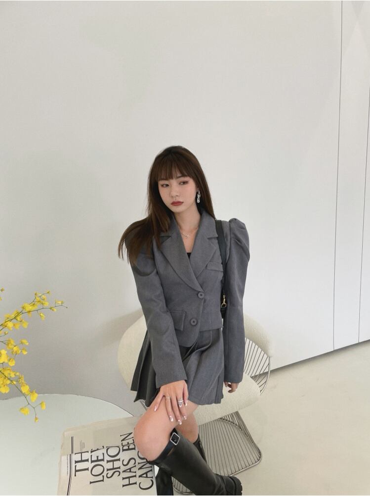パフスリーブにプリーツスカートが可愛い印象に◎