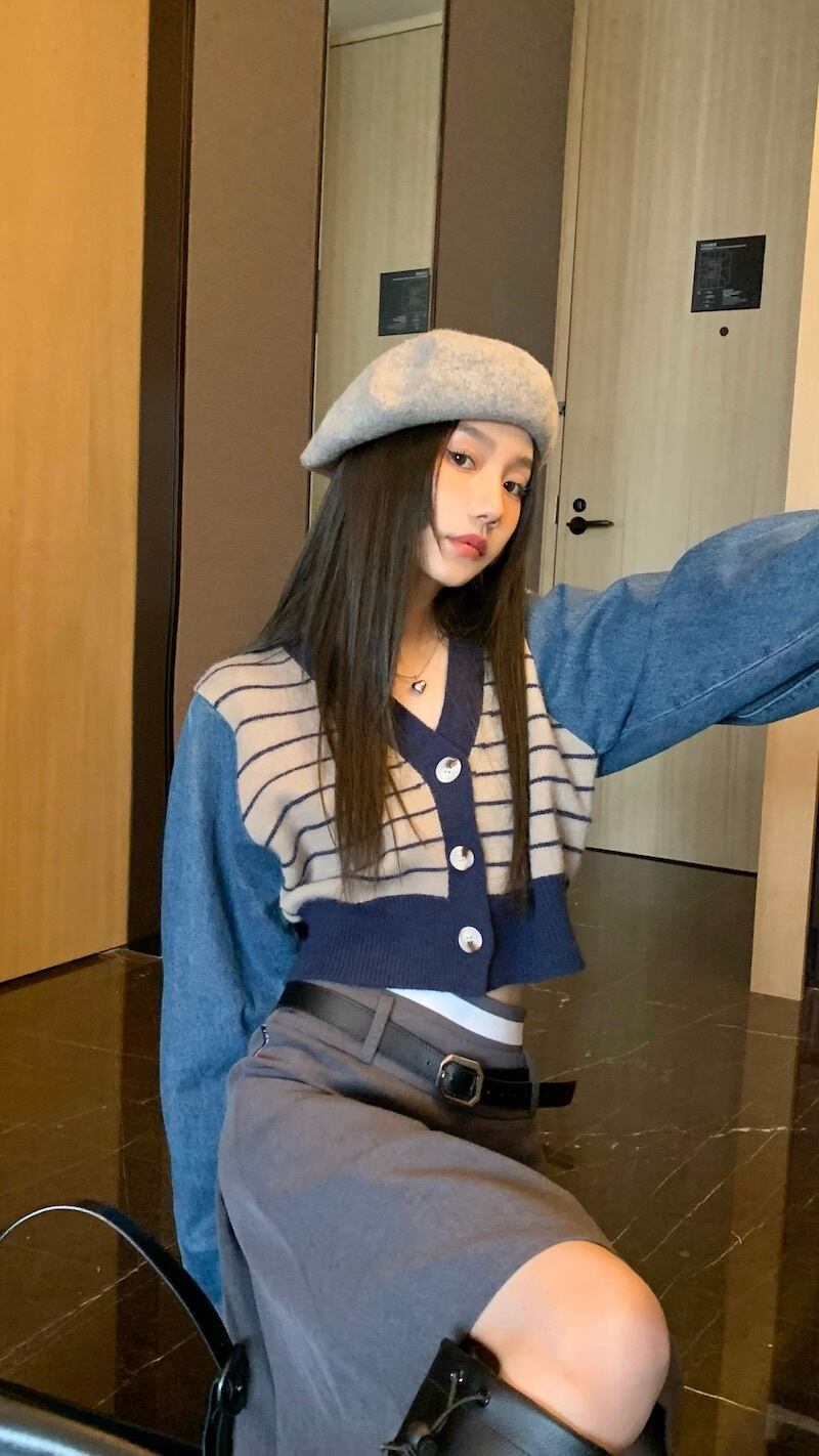 アウター レディース カーディガン ショート丈カーディガン ショート ショート丈 クロップド クロップド丈 Vネック フロントボタン ボタン ボーダー 異素材ミックス 長袖 デニム ニット へそ見せ へそ出し カジュアルスタイル ストリートファッション おしゃれ オシャレ ストリート ハイセンス トレンドアイテム カッコいい 大人可愛い 大人 シック 休日 お出かけ 女子会 女子 女性用 デート女子旅 旅行 ママ友 ランチ ディナー 春 秋 ワンサイズ 韓国系 オルチャン 韓国ファッション 送料無料