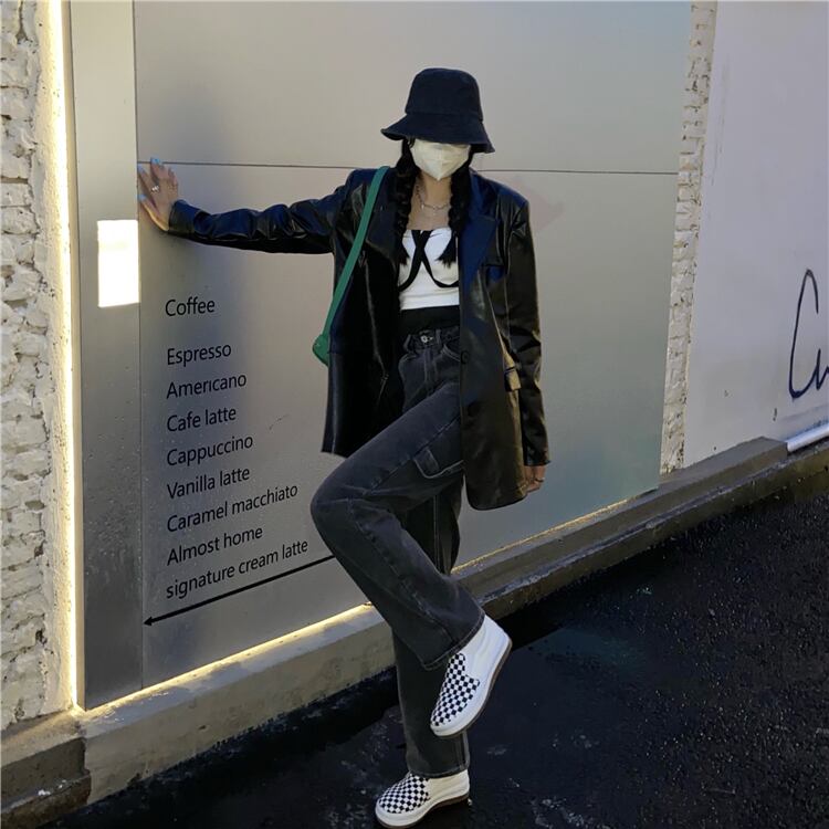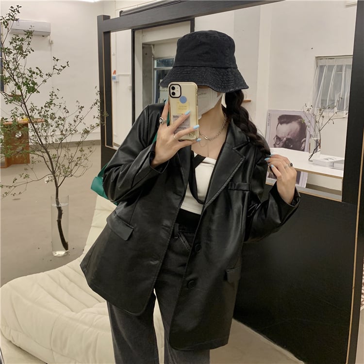 アウター レディース ジャケット コート 袖あり 長袖 襟付き 前開き レザー PU かわいい 可愛い 大人 大人可愛い 大人女子 おしゃれ お洒落 ルーズ クール かっこいい シンプル カジュアル こなれ感 ラフ 無地 誕生日 10代 20代 30代 女性 女の子 通勤 OL 通学 学生 デート お出かけ 公園デビュー 女子会 休日 旅行 ファッション 普段使い 韓国 韓国系 オルチャン ファッション コーデ スタイル トレンド モテ 楽ちん 体型カバー ワンサイズ ゆる ゆったり ブラック 送料無料