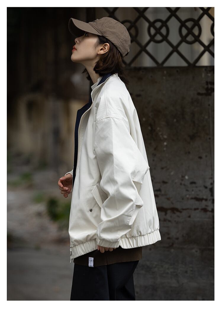 アウター レディース ジャケット コート 袖あり 長袖 襟付き ハイネック 前開き ボーイッシュ かわいい 大人 大人可愛い 大人女子 おしゃれ お洒落 ルーズ クール レトロ かっこいい スポーティー マニッシュ シンプル カジュアル こなれ感 ラフ 無地 誕生日 10代 20代 30代 男女兼用 通勤 通学 学生 デート お出かけ 公園デビュー 女子会 休日 旅行 ファッション 普段使い 韓国 韓国系 オルチャン 楽ちん モテ S M L XL 大きめ ゆる ゆったり アイボリー ネイビー 送料無料